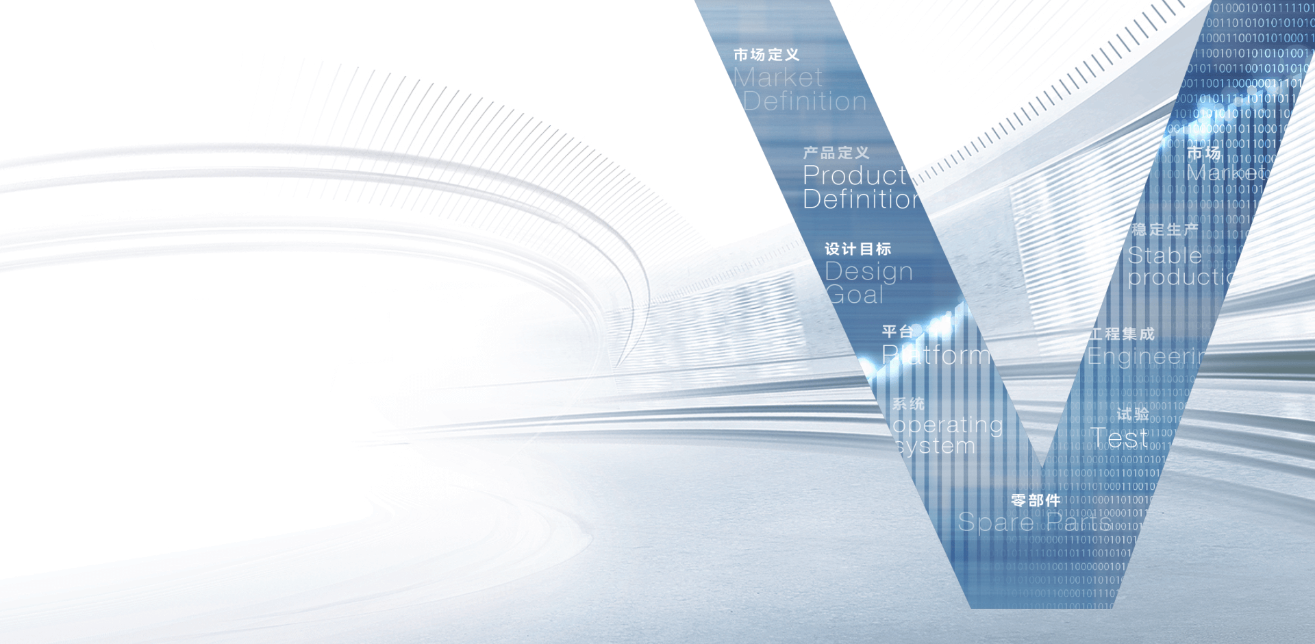 率先(xian)運用(yong)“從(cong)市(shi)場(chang)到(dao)市(shi)場(chang)”的(de)V字型正向開髮(fa)體(ti)係(xi),